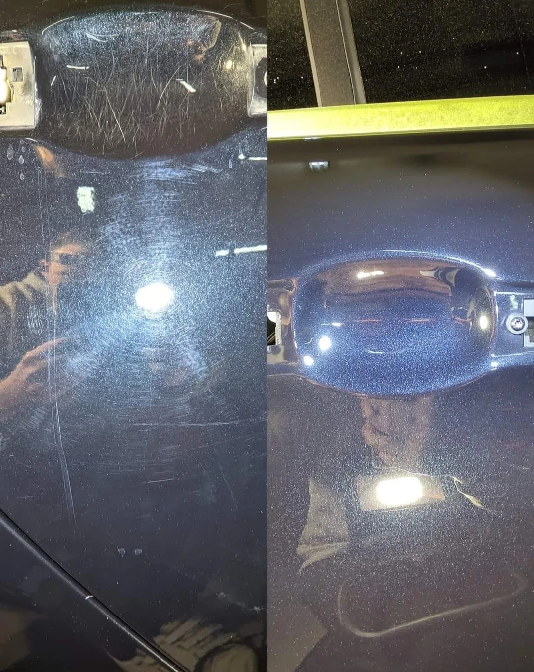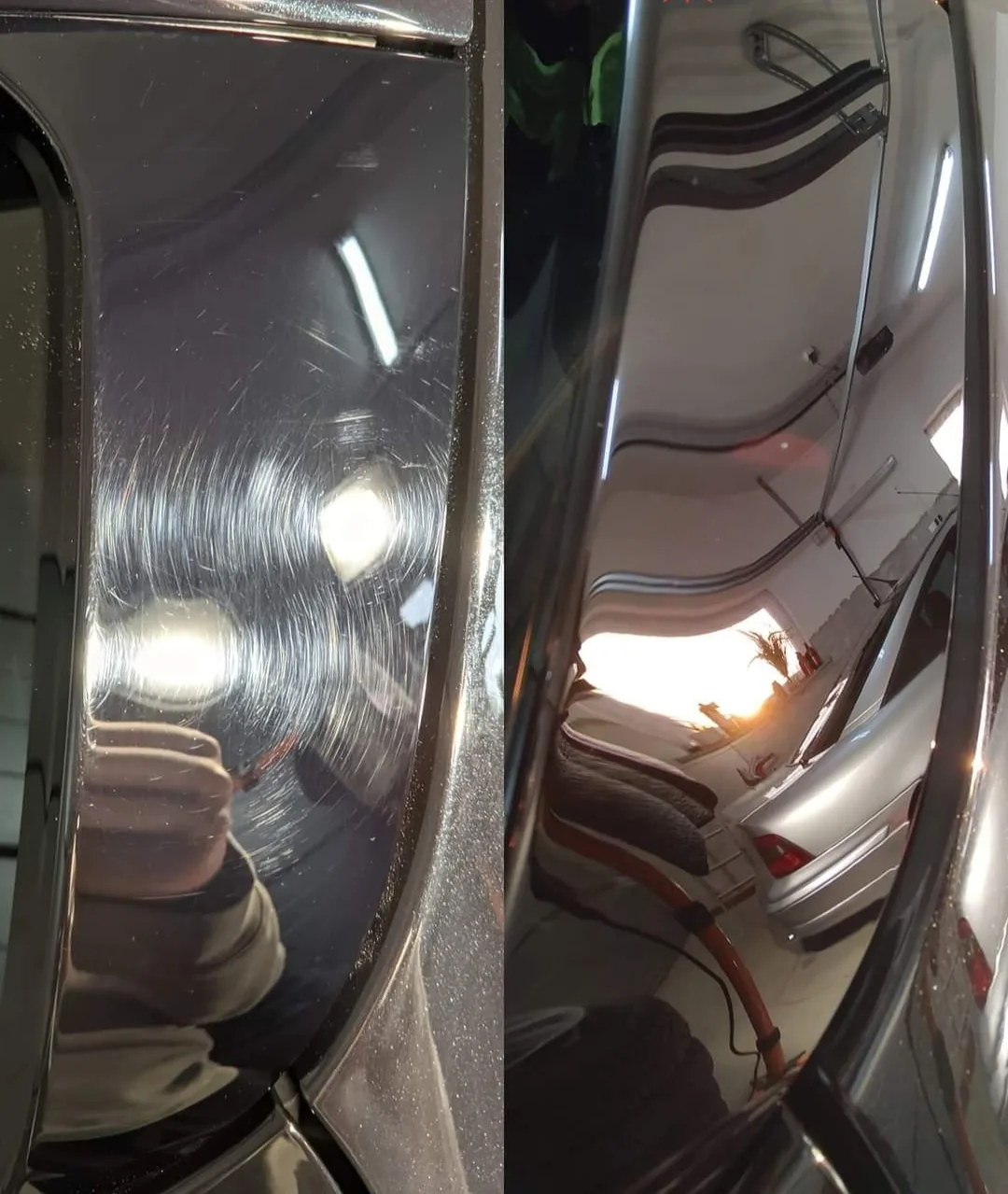 Polerowanie lakieru ma również na celu mechaniczne usunięcie wyblaknięć i plam, które mogą być spowodowane na przykład przez długo pozostające na nadwoziu ptasie odchody.
